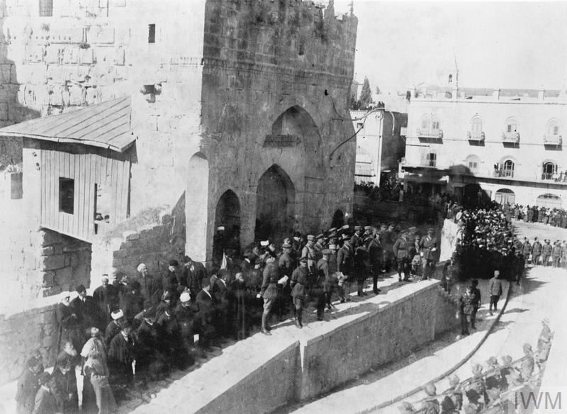 During the month-long Third Battle of Gaza, the Turkish defensive line along the Gaza-Beersheba road was breached in the first week of November. From then on, the enemy was in retreat, but General Allenby’s pursuit was hampered by water supply problems. Nevertheless, Allenby split the Turkish army in two following an action some 20 miles to the west of Jerusalem and forced its parts to retreat east and north. The culmination of the Third Battle of Gaza would be the fall of Jerusalem. The event would be marked by the distinction JERUSALEM, a Battle Honour that was awarded to our antecedent regiments and is emblazoned on the King's Colour of The Royal Irish Regiment.