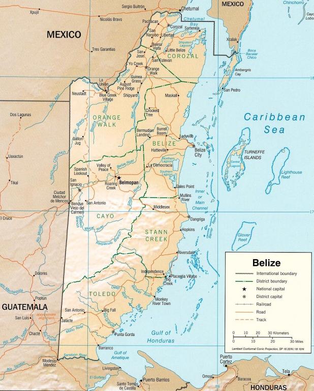 | Map of Belize and its border with Guatemala. |