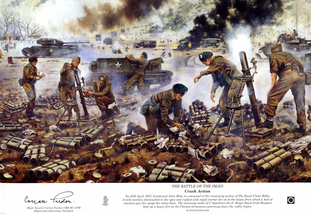 For 1 RUR's actions during the Battle of the Imjin River, from 22-25 April 1951, The Royal Ulster Rifles was awarded the Battle Honour IMJIN.