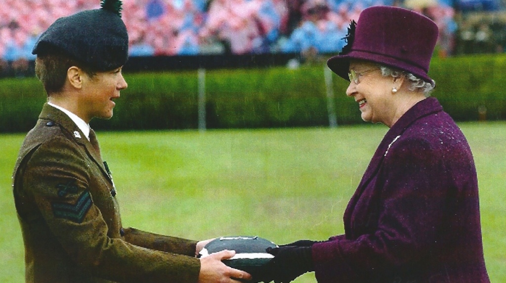 Cpl Clare Withers, whose father was the last member of the Regiment to be killed by terrorists, receives the Conspicuous Gallantry Cross, on behalf of the Regiment, from Her Majesty Queen Elizabeth II.