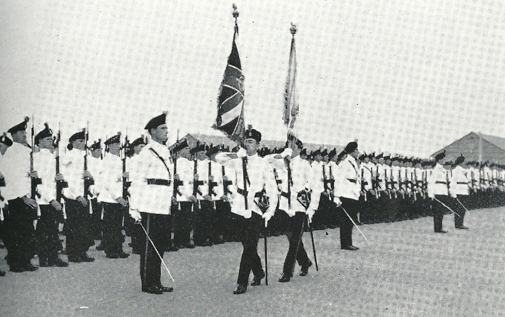 HRH The Duke of Gloucester, Colonel-in-Chief, presented the 1st Battalion The Royal Inniskilling Fusiliers with new Colours at a parade held in Templer Barracks, Kahawa outside Nairobi, Kenya on 20 February 1962.